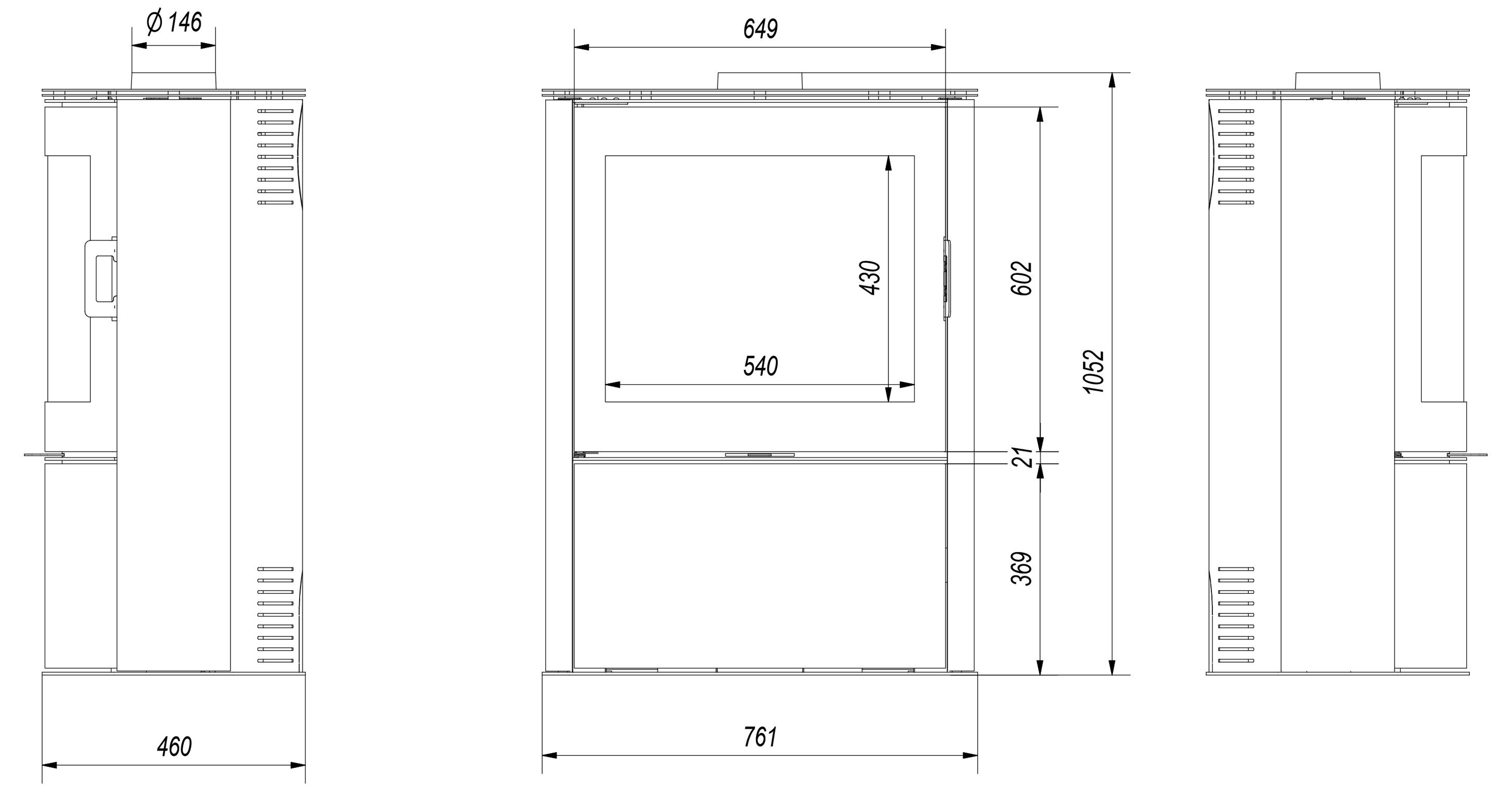 - spaľovacia komora, korpus, vrchná časť a dvierka vyrobené zo žiaruvzdornej ocele,