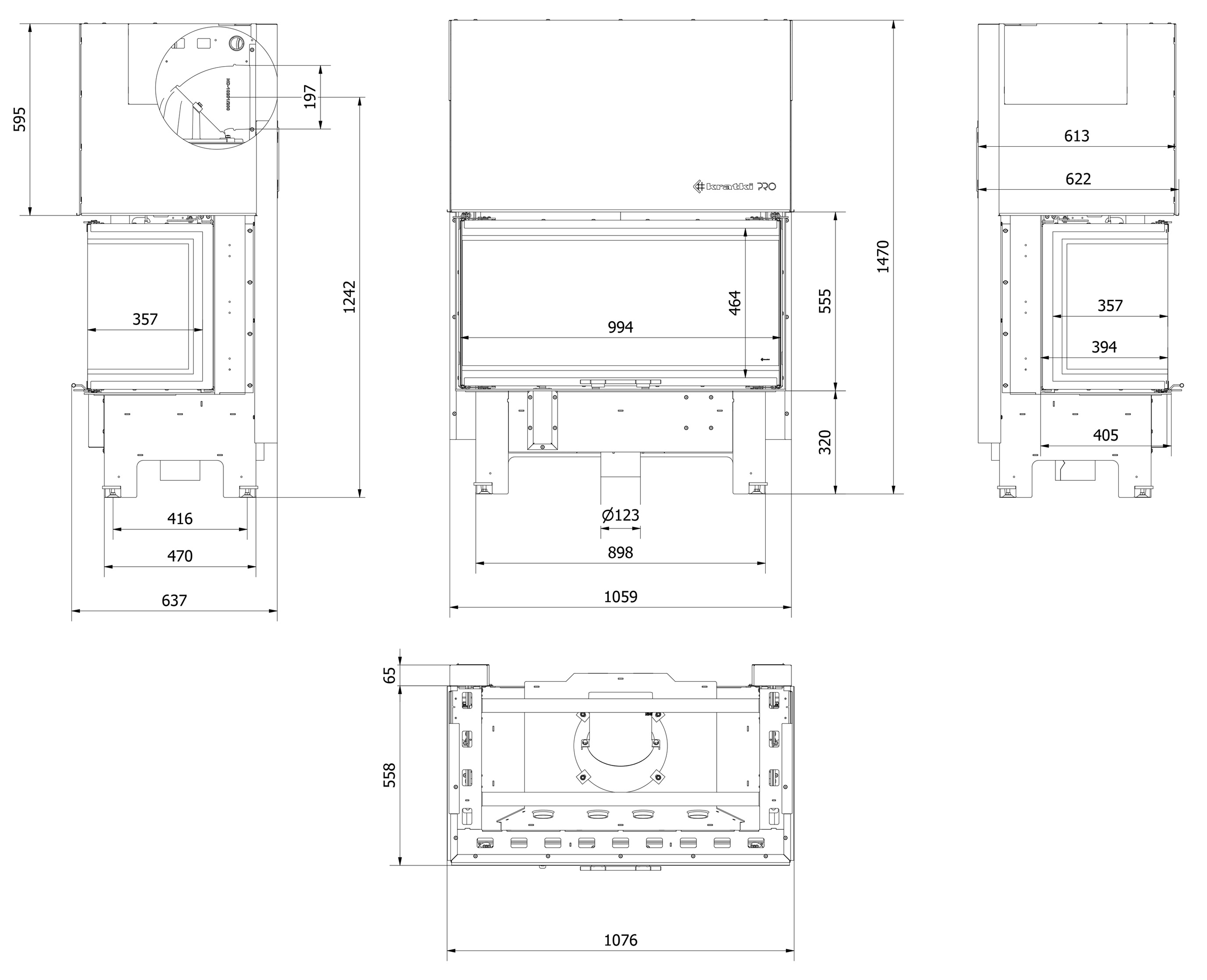Trojstranné presklenie zaručuje maximálny pôžitok z pohľadu na oheň. dekoratívne sklo typu GLASS, ktoré opticky zväčšuje ohnisko a príjemný, tichý mechanizmus otvárania dverí.
