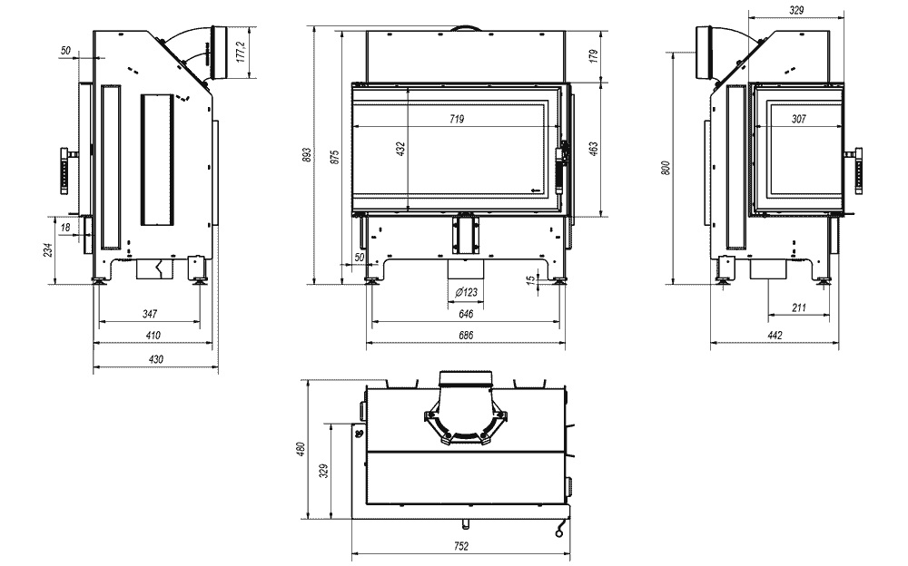 • Stabilita a flexibilita inštalácie – Nastaviteľné nožičky a  otočný výstup dymovodu prispôsobia zariadenie každému interiéru.