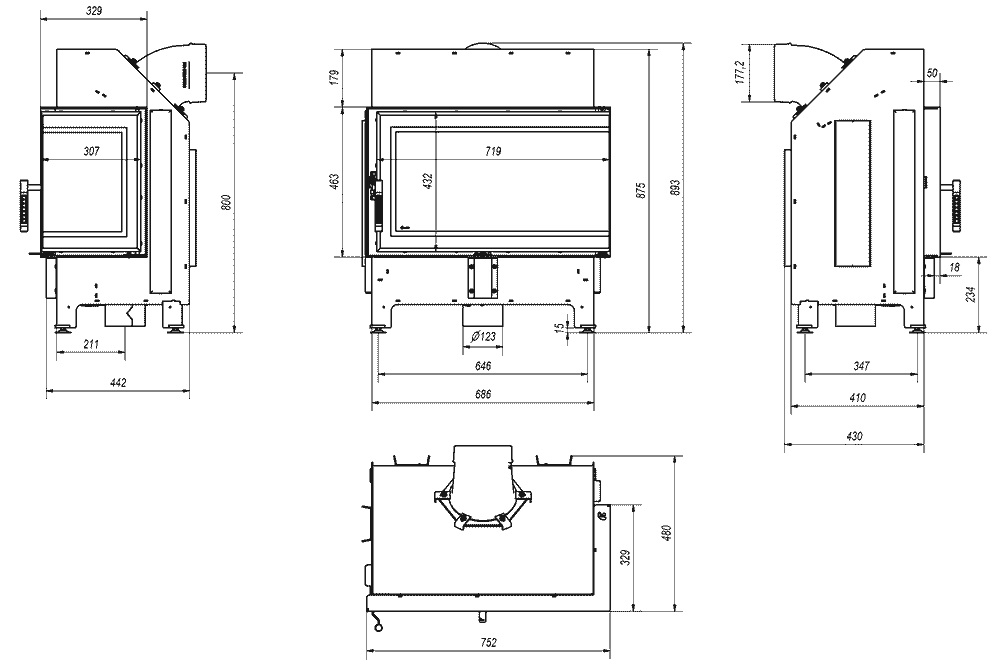 Stabilita a flexibilita inštalácie – Nastaviteľné nožičky a 360∘ otočný výstup dymovodu prispôsobia zariadenie každému interiéru.
