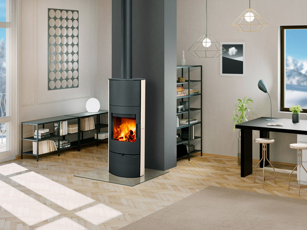 "Štíhle vysoké krbové kachle s obľúbeným oválnym tvarom a s vysokou schopnosťou sálať dodatočne teplo."